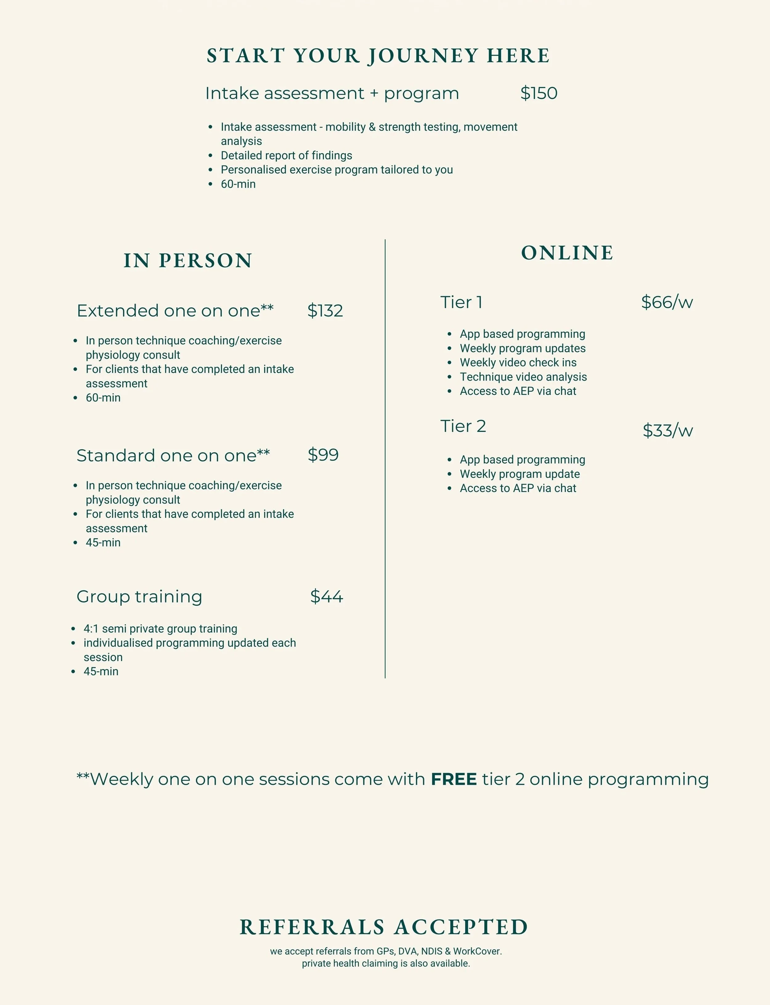 Each program is tailored to your health, abilities, condition, goals, capacity and circumstance.
